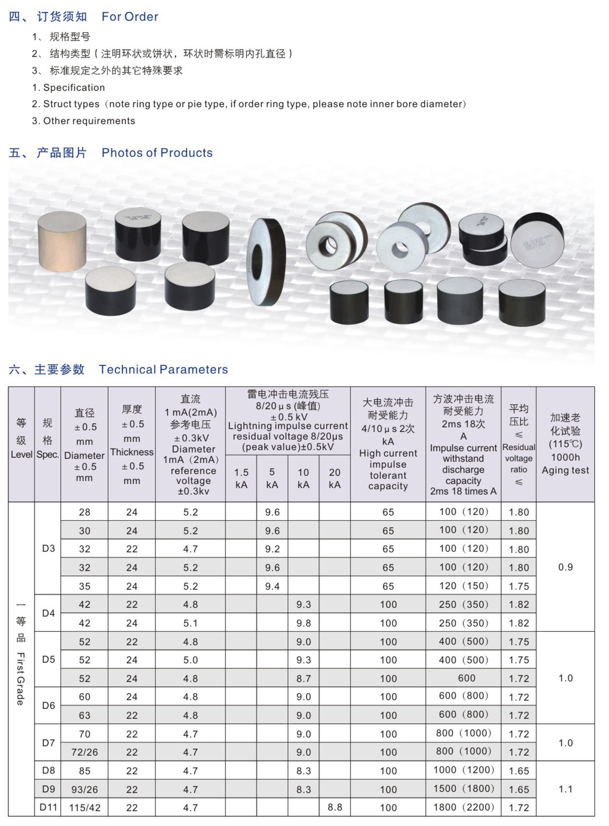 本公司专业规模生产0.22kV~500kV交流系统用氧化锌电阻片,适用于0.22kV~500kV交流系统的过电压保护。同时,根据用户的不同需要,生产各种适用于特殊地区及场合使用的氧化锌电阻片。