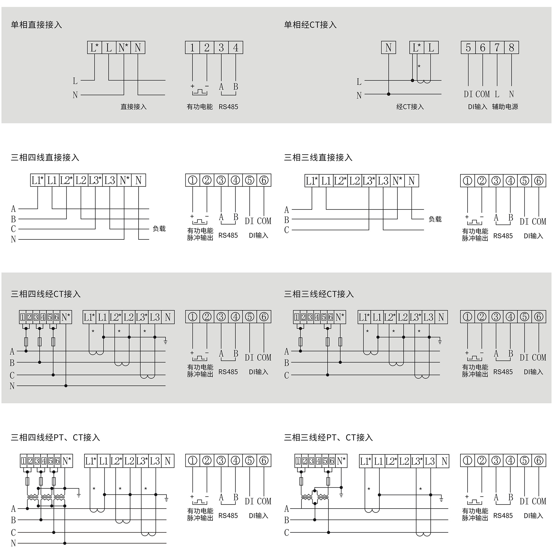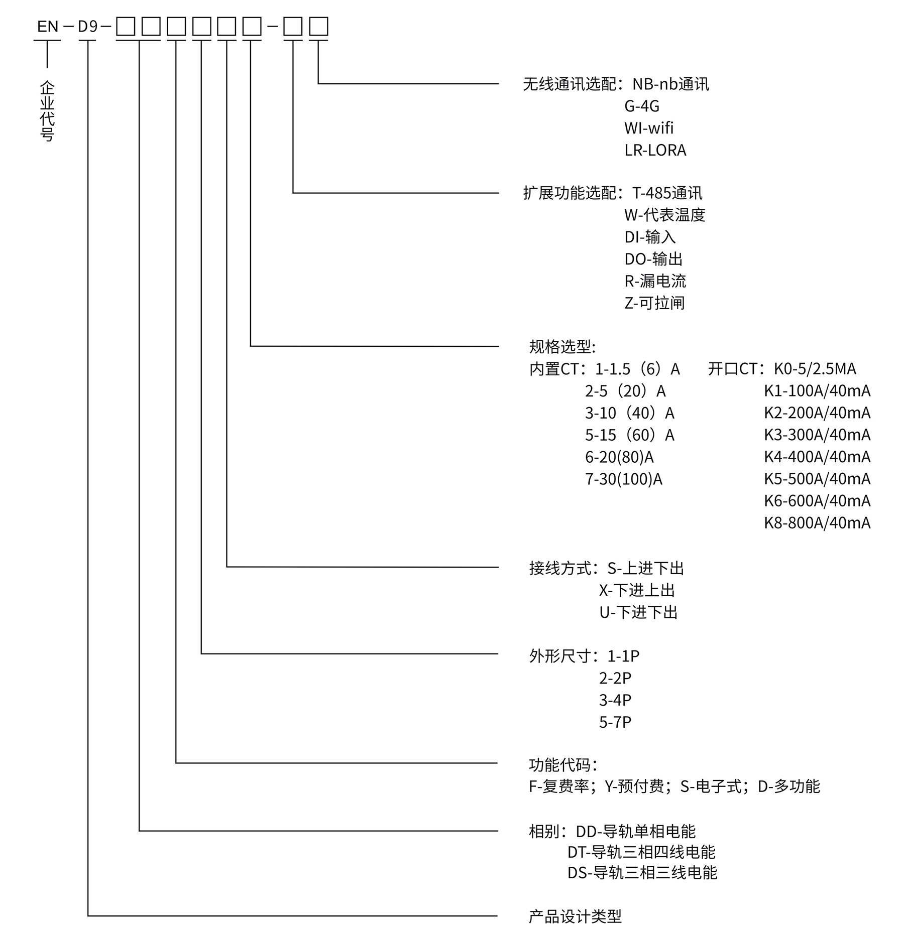 可选配功能:多功能、付费率电能、预付费、开关量输入输出、无线通讯。