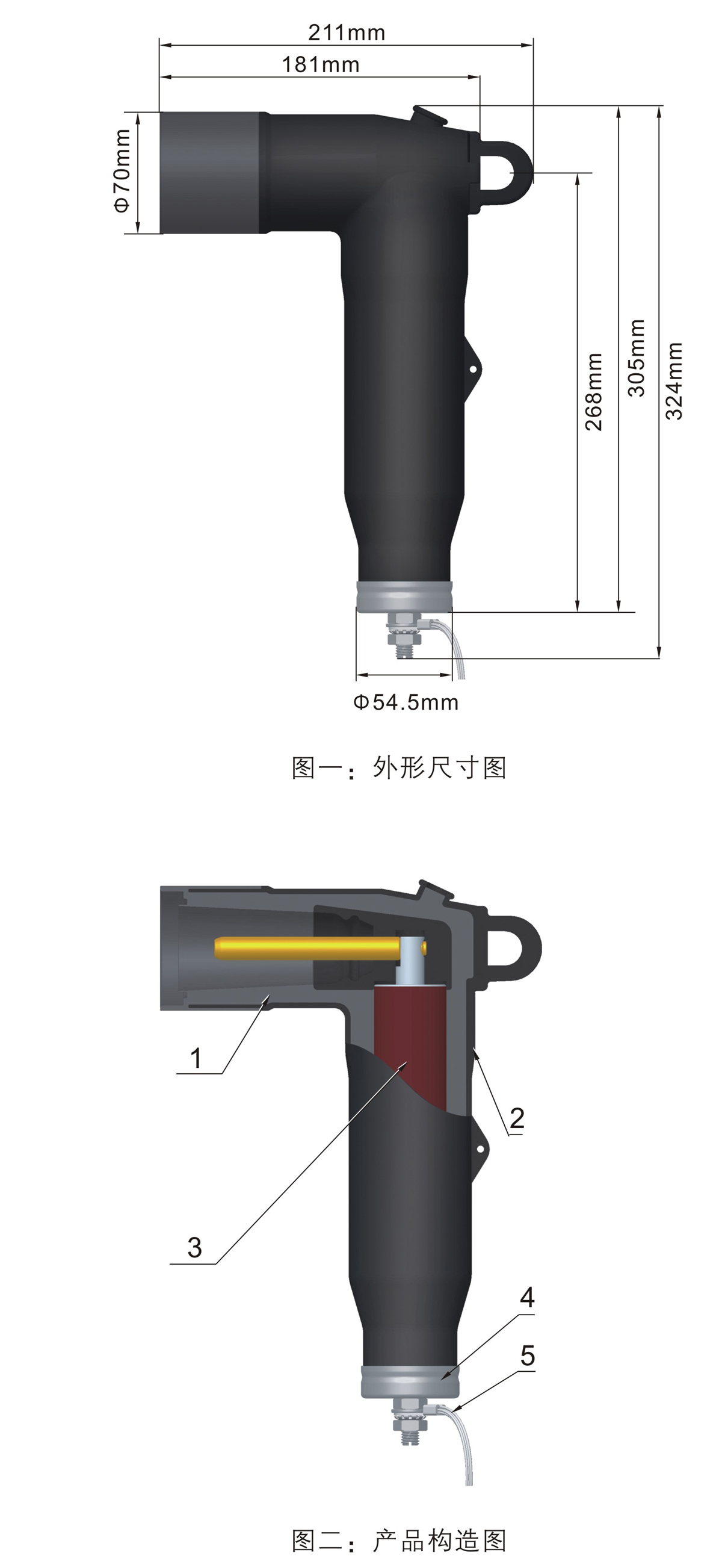 25kV肘型避雷器,广泛用于美式箱变和分支箱,地埋变、开关柜及其它设备。