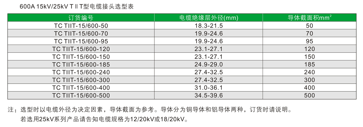 15kV/25kV TT型电缆接头选用EPDM(三元乙丙橡胶)制成,全绝缘,全密封。用于高压地下电缆连接设备,如箱变、环网柜及电缆分接箱等,其额定电流为600A,可连接相关规格的电缆,在其测试点上安装带点指示器,能快速准确的查找故障点。T型电缆接头与转换头配合转变成TT型电缆接头。TIT有600-200转换接口,可接200A肘型电缆接头或肘型避雷器等。